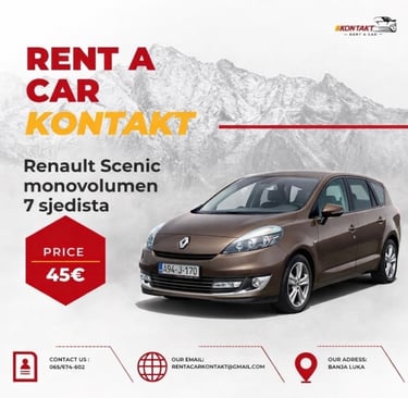 Kontakt rent a car nudi pouzdan najam vozila u Banjoj Luci i na aerodromu.